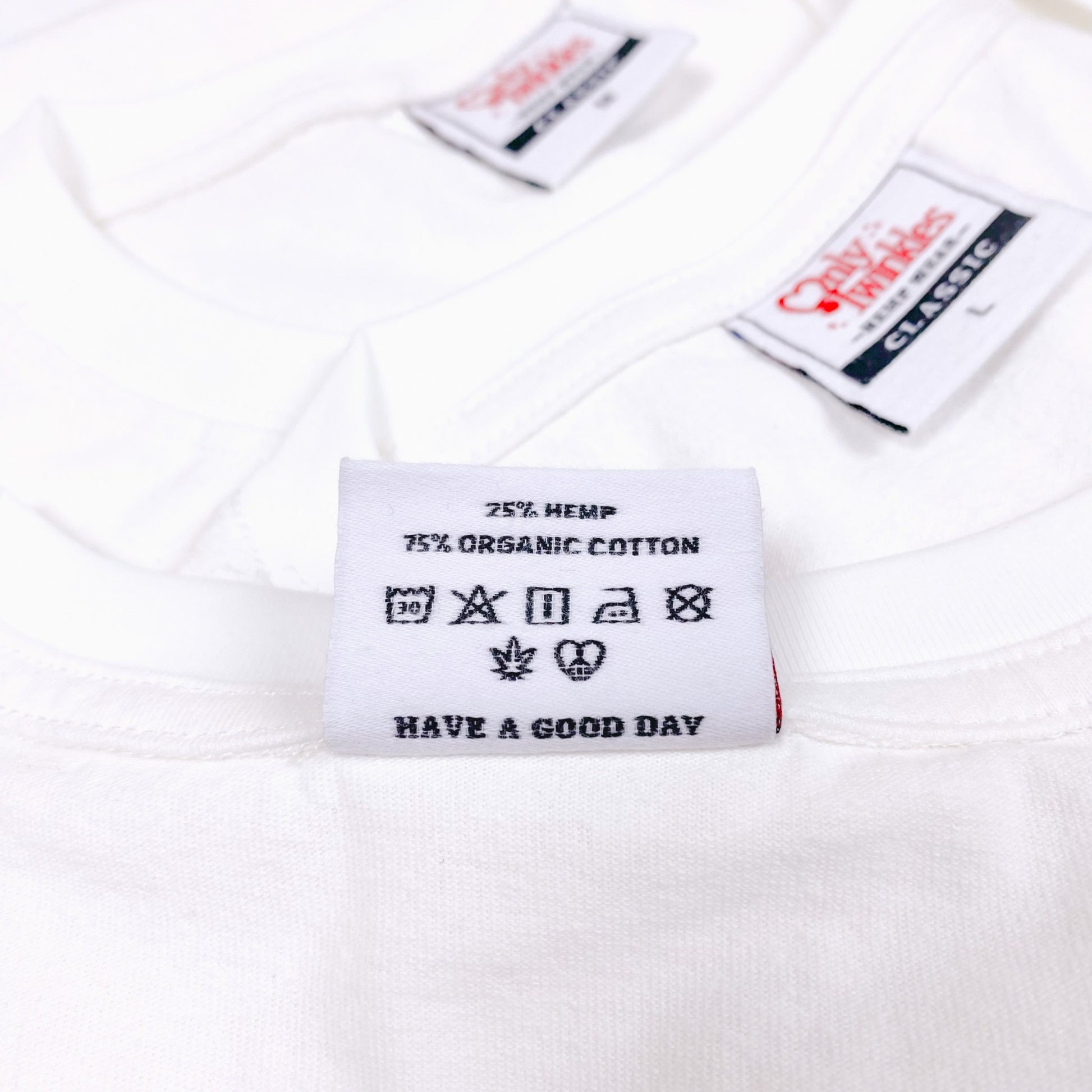 タグ部分はナチュラルコットン100%使用、化学繊維不使用で肌の弱い方も安心して着用いただけます。